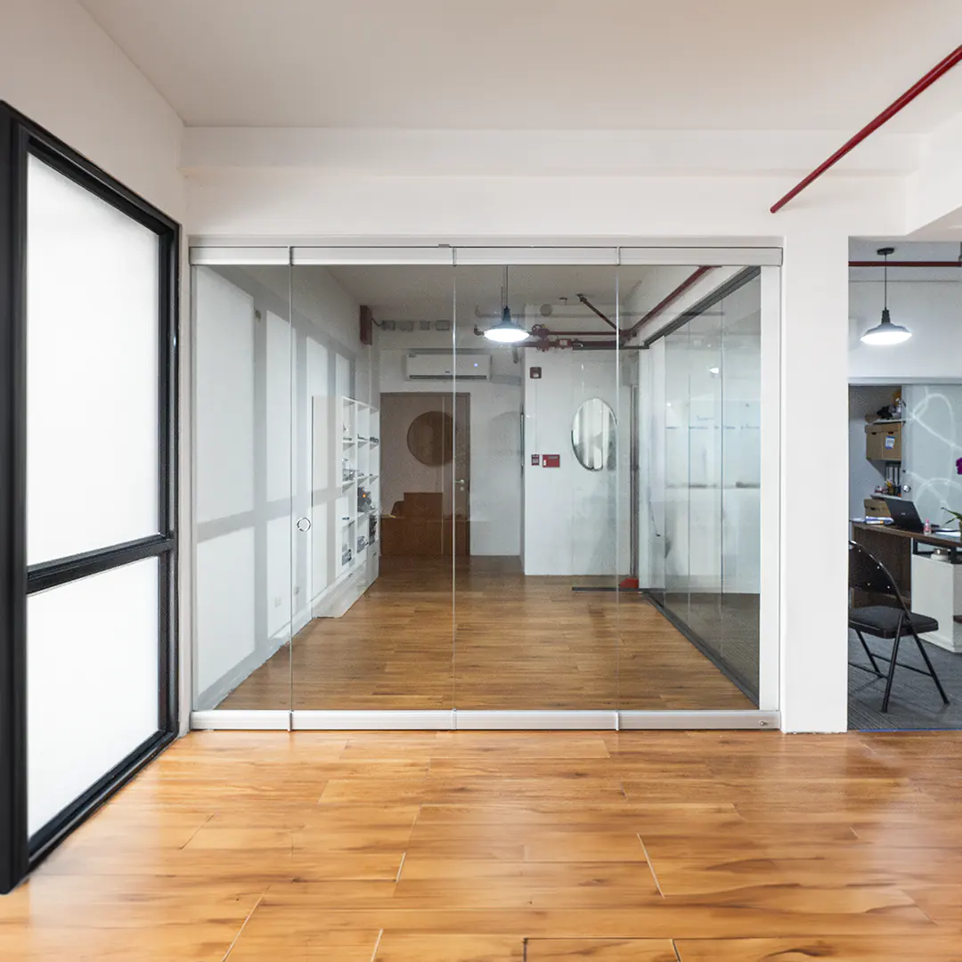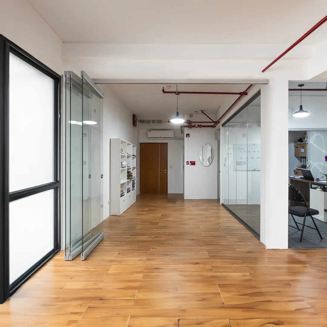 No requiere riel en el suelo, dejando el pase libre de obstáculos