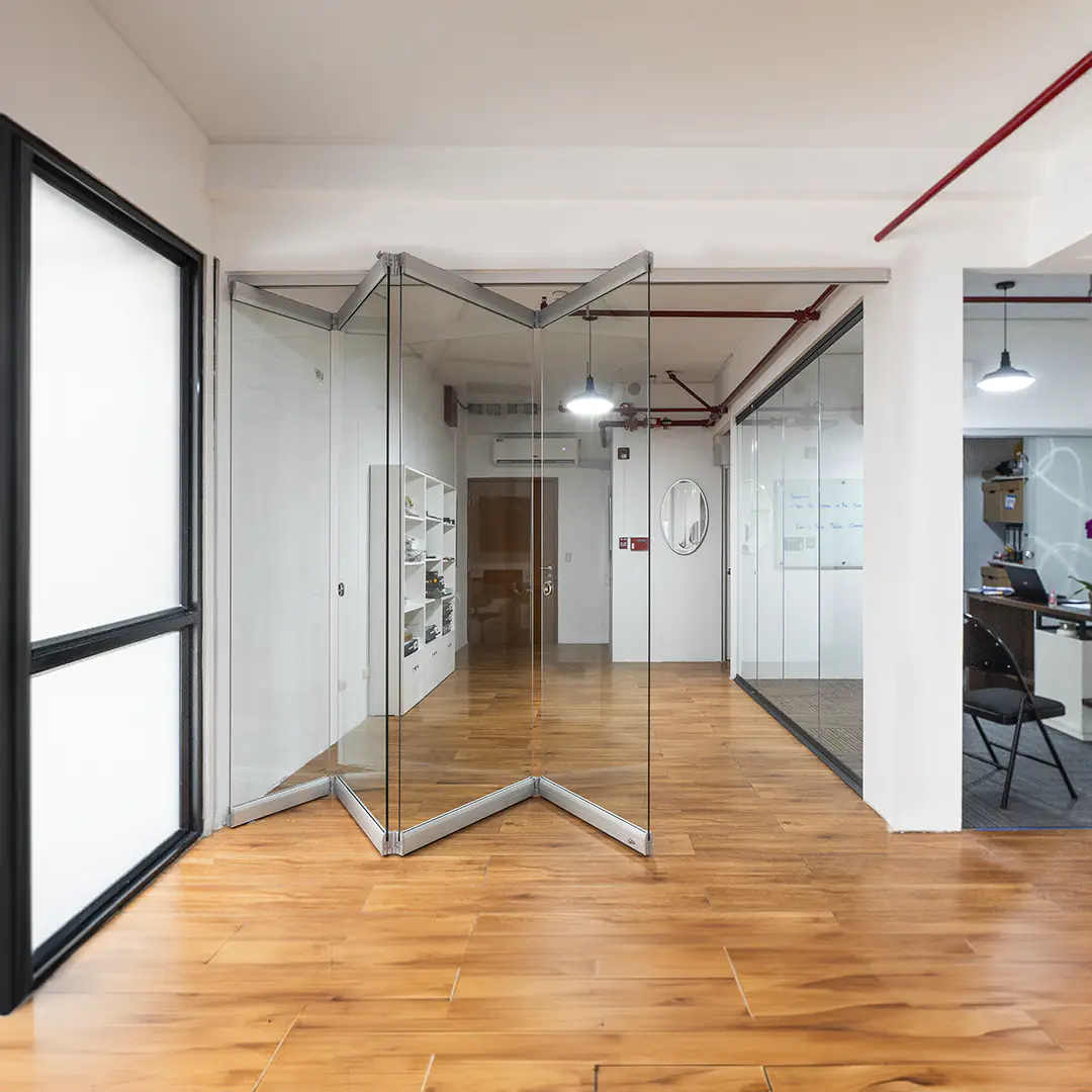 La Puerta Plegable de Vidrio Sistema Ducasse Tauro Centro VD permite integrar espacios y ofrece una apertura total del vano. Su diseño modular se adapta a la configuración necesaria de cada proyecto, lo que la hace ideal para cualquier tipo de espacio.